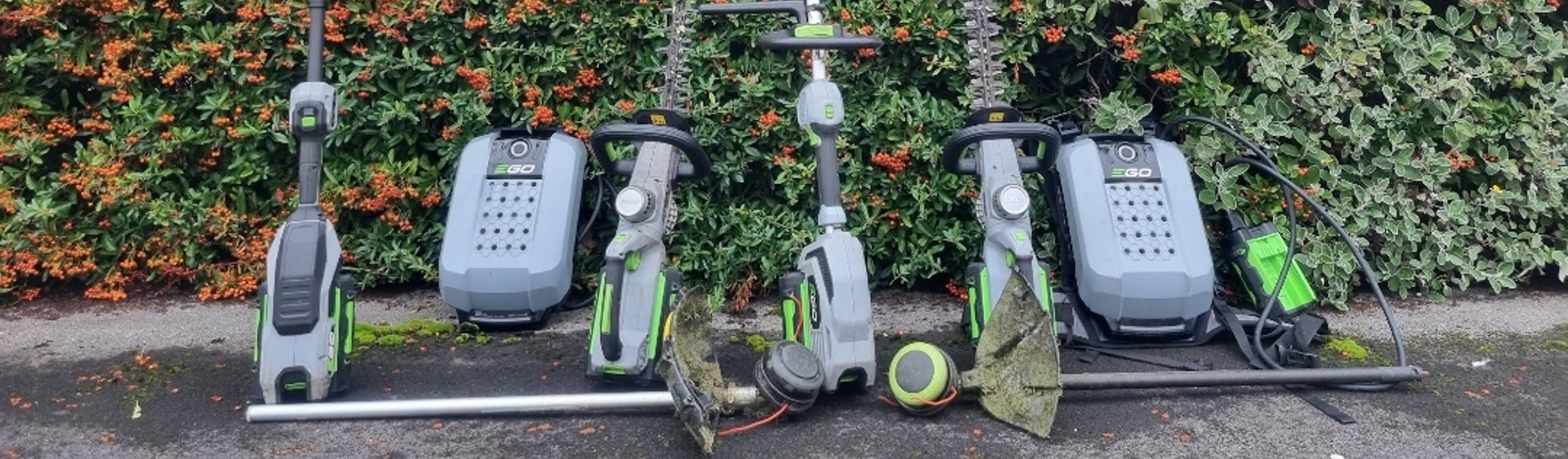 Our electric tools include various hedge trimmers and strimmers, and we are also exploring the possibility of upgrading to a battery-powered ride-on mower.