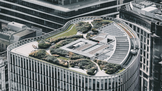 Landscape podiums and roof gardens that create functional spaces and enhance biodiversity